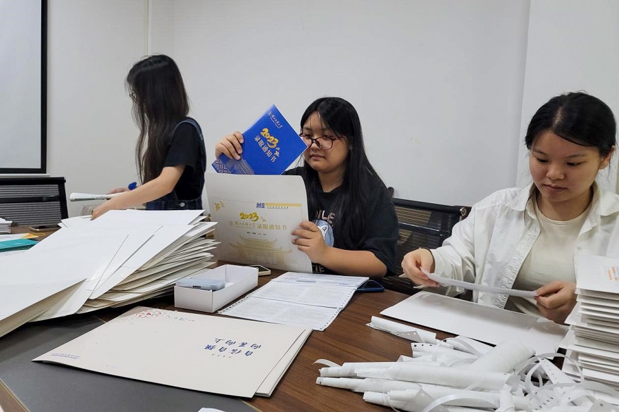 工作人员分装录取通知书