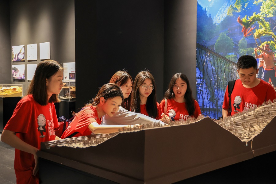队员观摩彭家寨景区模型