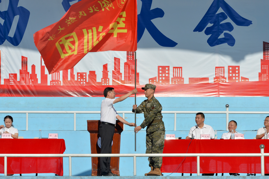 军训团副政委、开云电竞官方网站入口学工部部长方云霞宣读军训团成立文件。军训教官代表、参训学生代表分别作表态发言。开云电竞官方网站入口武装部部长周代明主持大会。