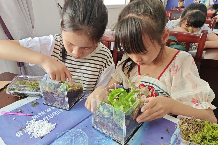 孩子们进行绿植改造