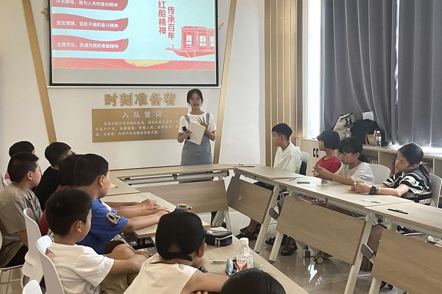 实践团队的“百年红船”党史学习教育,以深切的情感将党史学习教育的价值融入每一位孩子的心灵。讲述、互动游戏和情景再现将“百年红船精神”活灵活现地呈现在孩子们面前。“李汉俊掩护共产党人被捕”“何叔衡跳崖”等红色经典,带领孩子们重温中国共产党一路走来风雨兼程、披荆斩棘的光辉历史,让他们从小牢记革命历史,踏着革命先辈的足迹,争做共产主义接班人。