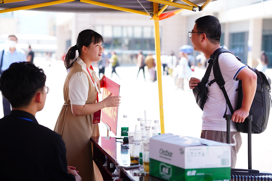 在设于行政楼一楼大厅的报到点,现场工作人员细心指导新生按报到手续办理入学事项,帮助新生快速开启新的校园生活。