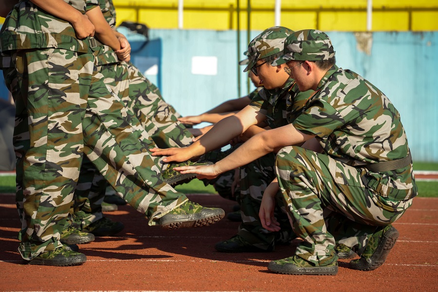 在过去的一周时间里,各排已在不同程度上熟悉、掌握立正、稍息、跨立、停止间转法等相应军事技能。“一二三四,一二三四”,铿锵的口号在空旷的操场声声回响,晶莹的汗水从少年的额角慢慢滴落,千百次定点的挥臂,坚定且有力的步伐,军训将会成为所有参训学生大学生活中一段难忘的经历。“恰同学少年,风华正茂”,训练场上,参训学生英姿飒爽,认真专注,在日复一日的军事训练中不断磨练意志,增长本领。军事训练不仅能够考验和磨砺参训学生的意志,加强其组织性、纪律性,更是培养学生爱国主义情怀的重要途径。在军训团和学校组织下,参训学生分别以营为单位组织前往大学生广场观看红色爱国电影《红海行动》,进行爱国主义宣讲教育学习。医学部为参训学生准备红十字袖章,用这一举动来彰显医学生“救死扶伤”的使命与担当。