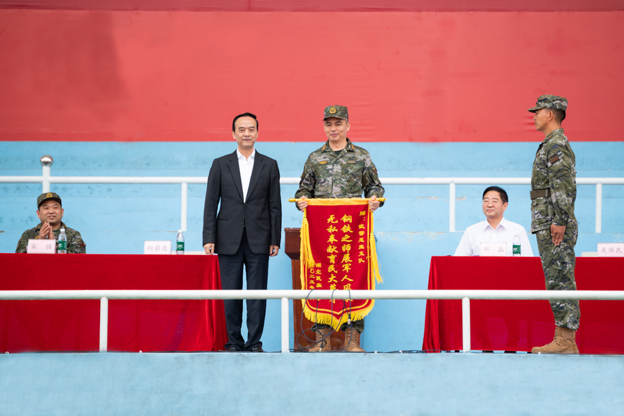 9月24日,开云电竞官方网站入口2023级本科生军训会操暨总结表彰大会在学校五环体育场隆重举行。学校党委书记向前进出席大会并为武警恩施支队授锦旗。军训团政委、学校党委副书记邓磊,党委常委、副校长李军,中国人民武装警察部队恩施支队支队长宋强,政治委员吴保民等领导出席大会,军训领导小组成员,各学院(部)党委、党总支书记,全体承训教官和参训学生参加表彰大会。
