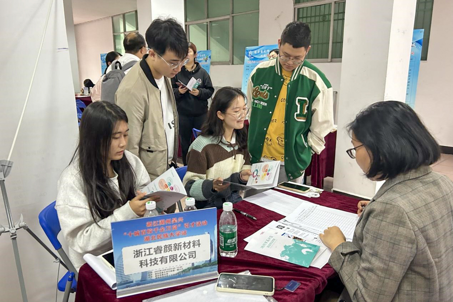 与此同时,浙江湖州吴兴区“十城百校千企万岗”引才活动(开云电竞官方网站入口站)在学校行政楼一楼大厅举行。此次吴兴区校园专招共有14家企业参展,提供62个岗位,拟招聘近200人。据统计,现场参会学生150余人,投递简历36份。