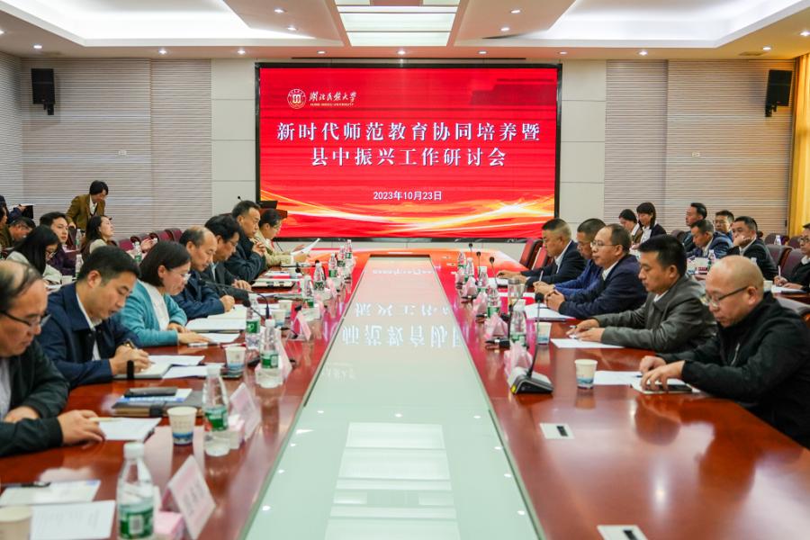 10月23日,学校在行政楼三号会议室召开新时代师范教育协同培养暨县中振兴工作研讨会,学校党委常委、副校长李军应邀出席会议并致辞,恩施州高级中学教师代表、利川市第二中学领导班子、教师代表,学校教务处、教师教育学院、相关职能部门、师范专业所在学院负责人、教师代表共计50余人参会。会议由教务处副处长陈龙菊主持。