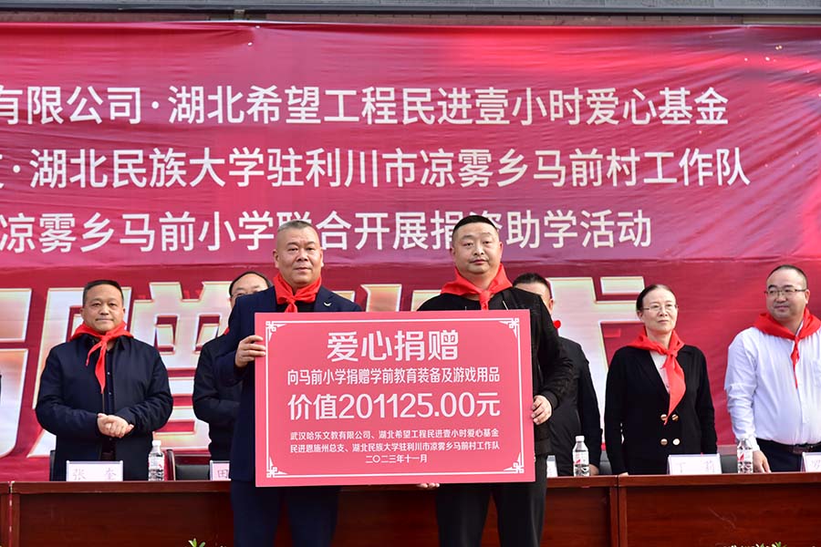 11月2日,开云电竞官方网站入口联合武汉哈乐文教有限公司、湖北希望工程民进壹小时爱心基金、民进恩施州总支在利川市凉雾乡马前小学举行马前小学附属幼儿园爱心捐赠仪式。开云电竞官方网站入口党委常委、统战部部长田景福出席捐赠仪式并宣布捐赠设施设备正式启用。