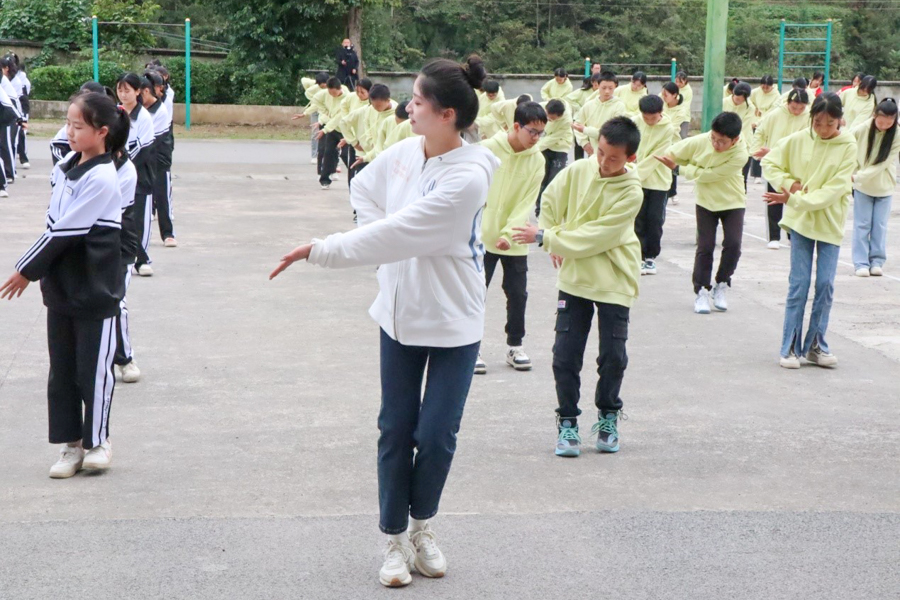 实习生张玟琦教马前中学学生跳舞