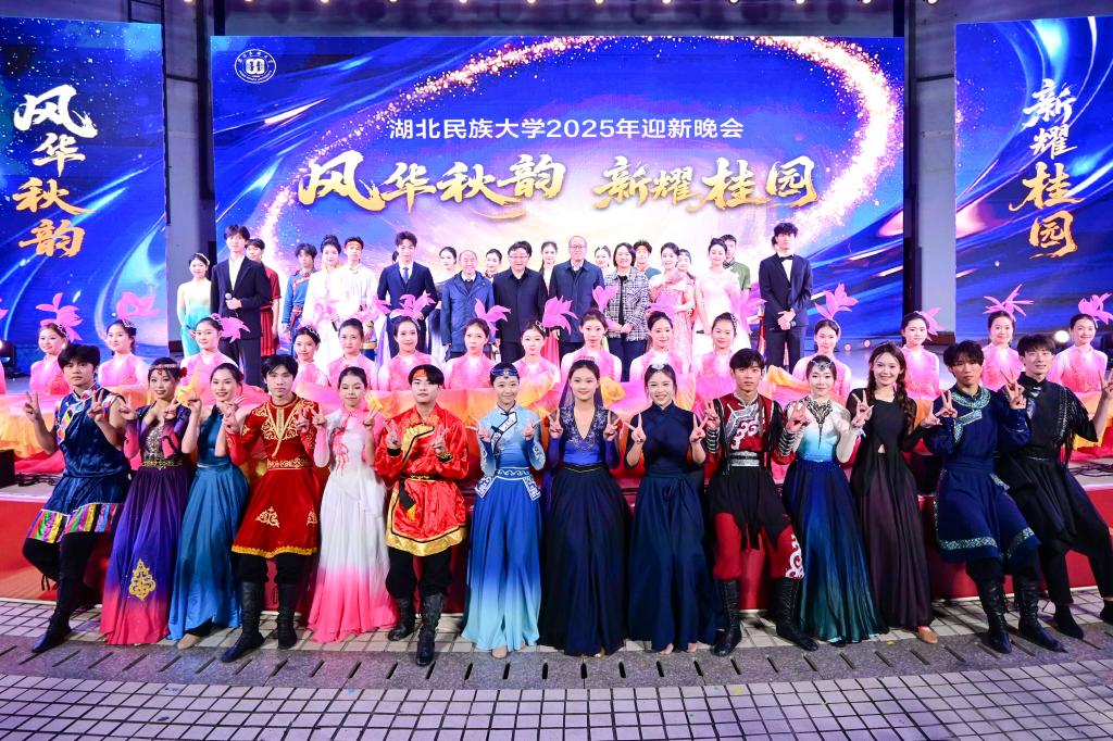 经济与管理学院的歌伴舞《像你这样的朋友》以轻快旋律、灵动舞姿,传递新生间的初遇温情,用热情有力的表演展现民大学子的青春风貌。文学与传媒学院、音乐舞蹈学院、教师教育学院联合表演的情景剧《共同语 共同体》,以新疆学生在湖北民大成长的故事为蓝本,用细腻的表达生动诠释了铸牢中华民族共同体意识的宏大主题。离退休教师奉献的舞蹈《青春的号角》以舒展动作、饱满状态,抒写“青春永不褪色”的生命热忱,引得现场掌声雷动。
