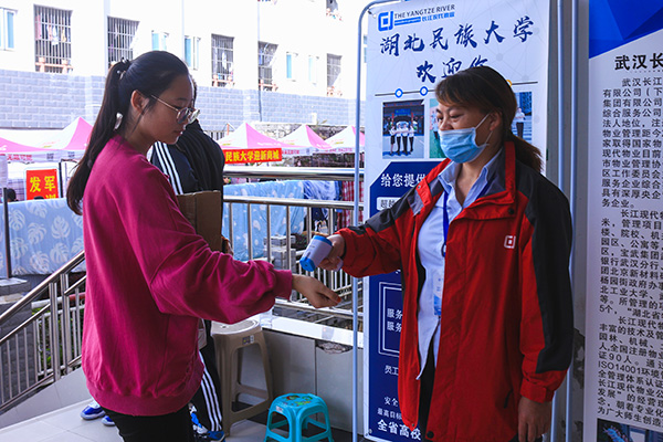 志愿者为新生测量体温