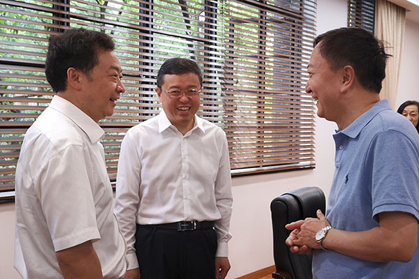 四川大学校长李言荣院士(右),四川大学党委常委、副校长侯太平(中)与我校党委书记吴建清交流