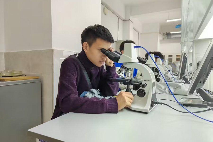 在工程实验实训中心,学生参观了显微互动实验室、力热学实验室和无机化学实验室,领队老师详细介绍了实验室设施设备、科研成果,为学生详细讲解并演示碰撞实验、植物茎初生组织结构观察实验和乙酸乙酯的制备实验,指导学生亲身感受科学技术的魅力,培养学生实践技能与创新思维。
