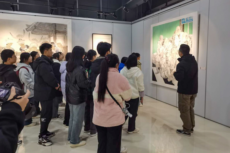 在美术与设计学院,学生参观《是我》教师美术作品展。美术展览是深化美育双向教育功能的实践方式,在拓展美育培养的同时,也可有效地提升美术学科特色建设的内涵维度。对于高中生来说,此次观展不仅可以拓宽眼界、感受艺术的不同形式,同时也可提高自身审美能力。