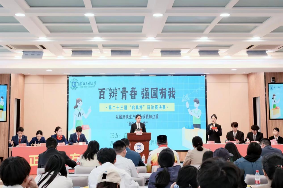 经过初赛、复赛和半决赛的紧张角逐,音乐舞蹈学院和化学与环境工程学院进入决赛。决赛现场,正方音乐舞蹈学院与反方化学与环境工程学院围绕“发展新质生产力应该更加注重‘新’还是‘质’”这一辩题展开激烈的辩论。