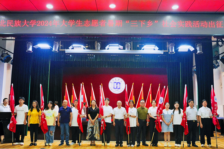 学生工作部部长方云霞宣读暑期社会实践立项文件,校团委副书记刘亚琼宣读安全告知书,民族学与社会学学院副院长唐卫青代表实践团队指导老师发言,美术与设计学院学生杨中瑞代表实践团队作表态发言。与会领导及嘉宾为24支校级团队现场授旗。