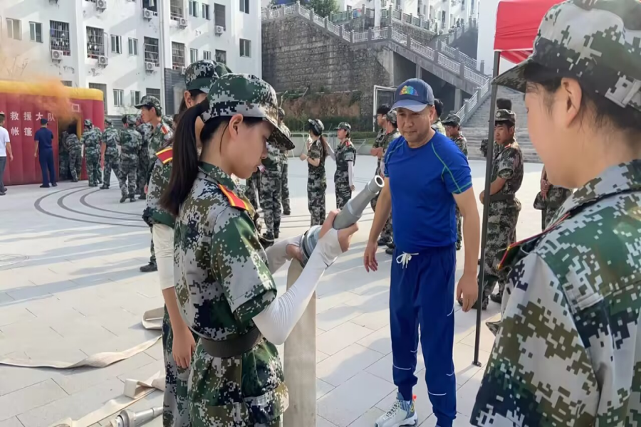 9月20日上午,根据2024级军训课程计划,学校组织2024级新生在东苑食堂旁空地开展消防安全培训演练活动,全体新生参加。