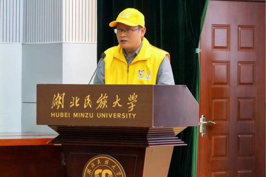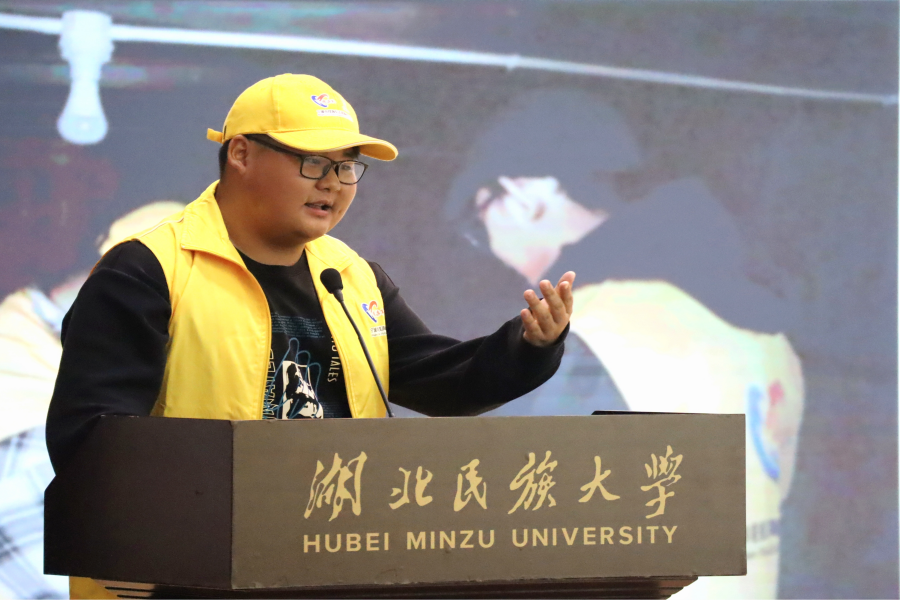 “时代楷模”钱海军的分享将活动推向了高潮。他以《民族团结携手行 同心共筑中国梦——这些年,我们一起走过的千山万水》为题,对自身的故事进行了分享。“从电工到电力义工”“从一盏灯到千户万灯”“从一个人到一群人”“从千户万灯到民族团结中国梦”,钱海军用质朴的语言和生动的事例讲述了致力于志愿服务事业的历程,激励着在场的每一位青年学子。他的分享充满了对民族团结的执着和对青年一代的殷切期望,赢得了在场师生的阵阵掌声。