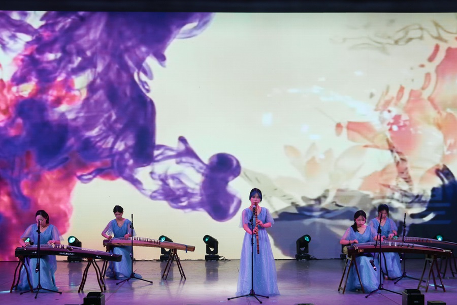在“倾心相遇 共绘篇章”中,桂园艺术团带来演奏《Black sheep》融合架子鼓、吉他等多种乐器,乐声磅礴壮阔。外语俱乐部带来配音秀《Tough Love》,表演者用流利的英语为影视片段配音,声情并茂,发音地道,展现了出色的外语水平与表演能力。