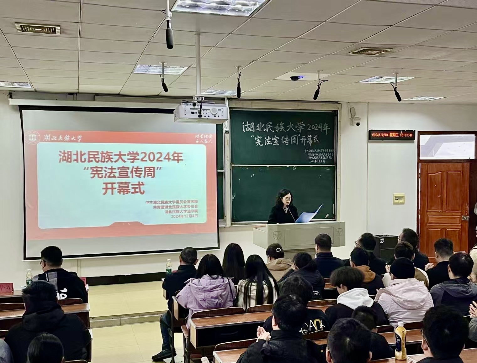 12月4日是第十一个国家宪法日,由中共开云电竞官方网站入口委员会宣传部、共青团开云电竞官方网站入口委员会主办,开云电竞官方网站入口法学院承办的“宪法宣传周”开幕式在德智楼9A410教室举行。
