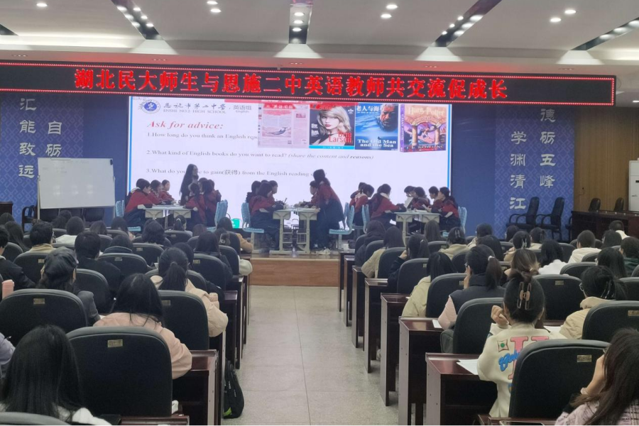 一百次提问不如一场深度体验,一百次沟通不如一次亲身感受。在“职业挑战冲一冲”环节中,外国语学院组织大一新生前往恩施高中、恩施市一中、恩施市二中开展教育见习。师范生们参与授课、说课、评课环节,近距离观察教育教学的真实状况和实际要求,亲身感受课程教学改革背景下英语教学的创新与活力。硒博会上,商务英语专业新生在老师们的引导下,实地调研展会运转模式、营销策略,提高学生对理论知识的转化率和拓展度,增强学生适应社会、服务社会的能力。