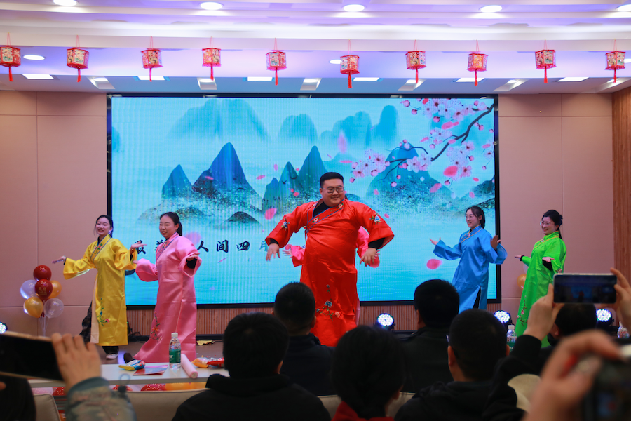 元旦晚会在学生科带来的舞蹈《上春山》中拉开帷幕。马院领导班子共同演唱歌曲《洪湖水浪打浪》,带领学生回顾洪湖地区革命先辈的英勇斗争历史,激发学生的爱国主义情怀。学院各教研部也通过歌曲串烧、红色诗歌朗诵等多种形式将思政理论和价值观以生动的艺术形象呈现出来,引导学生在艺术熏陶中接受思想政治教育,激励学生传承红色基因,提升思想境界。