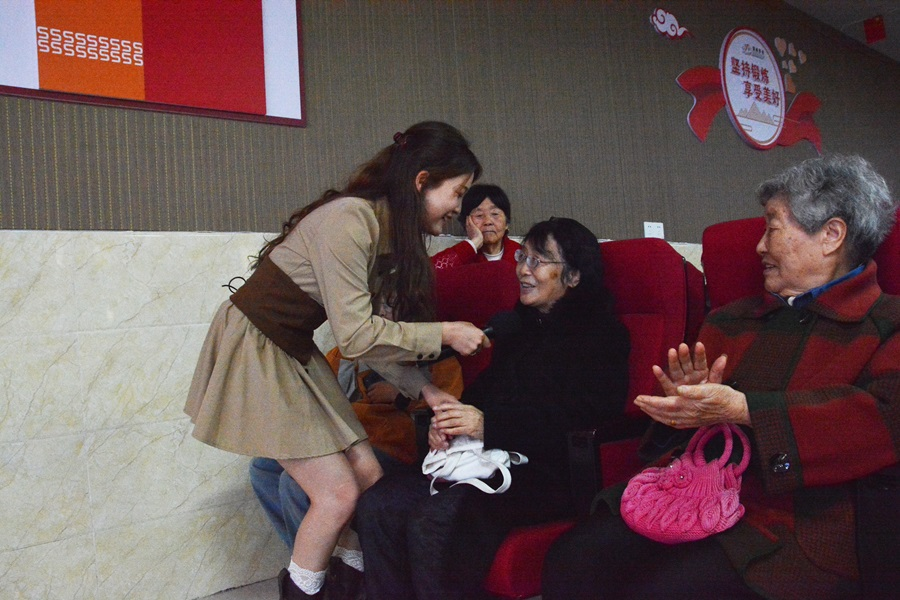 学生与老人进行互动