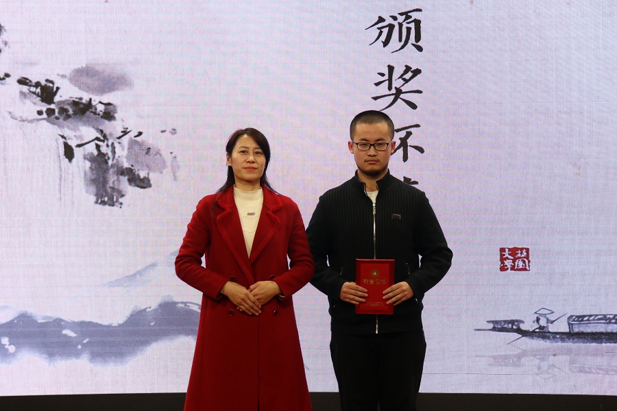 李御娇为一等奖获得者钱恒宇颁奖