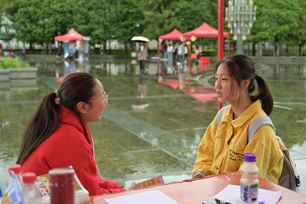 活动现场设置展棚若干,分设体验区和游戏区两个专区。社交读书打卡体验区中,参与同学在活动开始前7天进行阅读打卡,将自己喜欢或对自己影响最大的书籍以文字、视频等形式表现出来,现场热闹非凡,参与者选择的书目种类繁多,包括《平凡的世界》《月亮与六便士》《活着》。