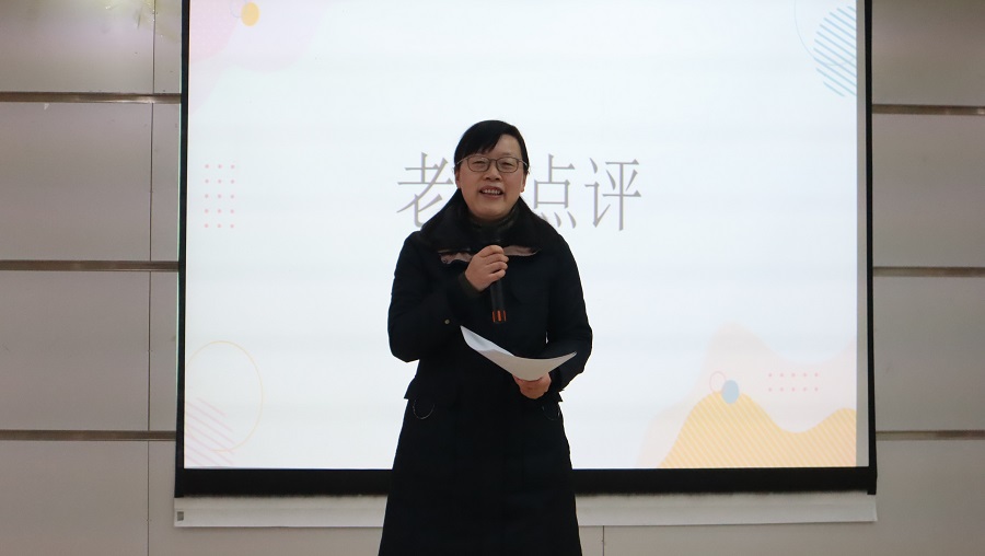 崔应美点评。她首先高度赞扬每个选手的精彩表现,对选手的基本素养以及语言表达能力表示肯定,随后指出选手在主持过程中应注意节目完整性并为此提出建议,她希望越来越多学生积极参加主持人大赛,用青春力量书写新时代新篇章。