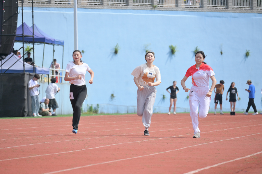 各就各位!一声令下,疾跑如风。男、女子赛跑如火如荼地进行中。裁判员枪声一发,运动健儿们矫健的身姿成为了跑道上一道亮丽的风景线。