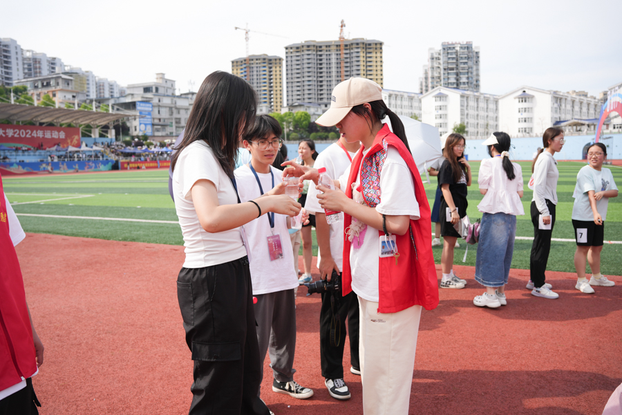 赛场内外,有一群洋溢着活力的志愿者。他们驻守在操场的各个角落,奔走在运动场之间,为运动员保驾护航,陪跑、递水、赛后搀扶,志愿者与运动员的双向付出,让人倍感温馨,他们都是这运动场上最美的荣光。