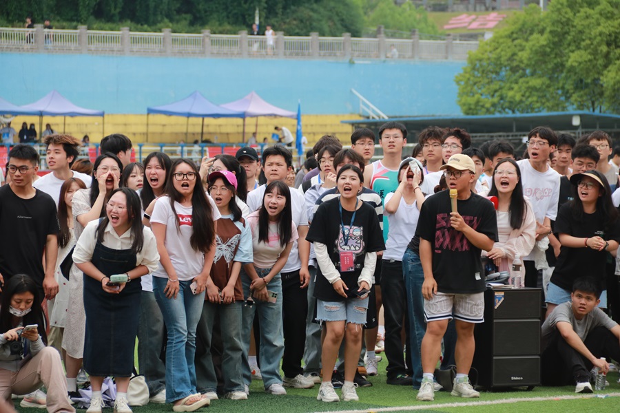 赛场上运动员奋勇拼搏的身影随处可见,放眼望去观众席上同样热闹非凡,拼命呐喊,为运动员们加油。欢呼声、鼓掌声此起彼伏,同学们的呐喊就是和运动员最好的互动,场上场下同心共行一同点燃青春梦想。