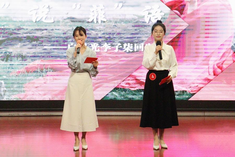 在搭档主持环节,选手两两组队进行比赛。四号选手龙诗雨与七号选手李菲配合默契,结合热点介绍李子柒的重新启程,表示当代青年应深入了解中国传统文化的精髓,在传承与创新中将非遗之美发扬光大。三号选手尹星璐与五号选手谭佳通过图文和视频展示各民族风采并深情告白祖国,向五十六个民族致以最崇高的敬意和最美好的祝愿。