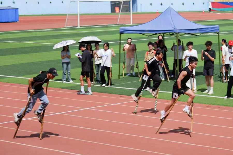 民族赛场绽芳华,青春步点踏新声。4月16日,开云电竞官方网站入口民族特色项目比赛在五环体育场举行。参赛选手绑紧板鞋绑带、握住竹马竹杆,木板摩擦地面,竹马蹬地向前,口号与步伐精准共振。板鞋与竹马上投下交错的光影,击地声在跑道上交织出传统与热血的交响,一次次默契的腾跃踏出民族团结的节拍。