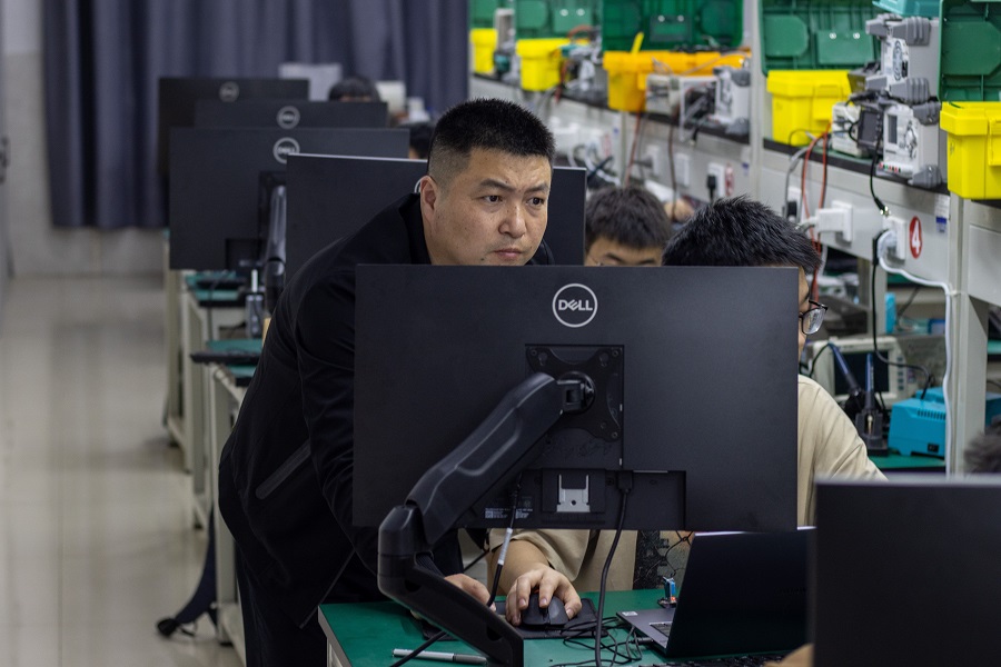 黄勇向学生讲解技术原理