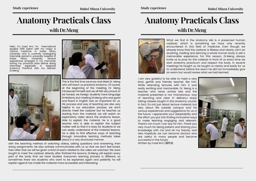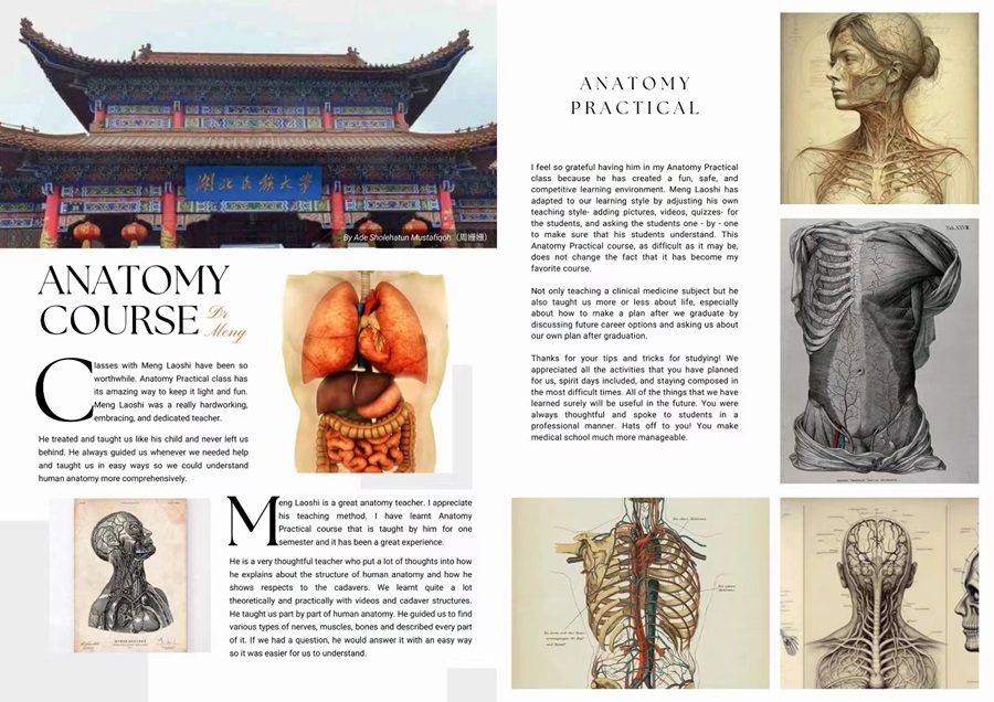 2023年春季学期,拥有扎实语言功底和专业知识的孟详喻承担了面向留学生的全英文局部解剖学实验课程的教学任务。“孟老师不仅英语表述极其流利,而且专业底蕴深厚,深受留学生群体的高度赞誉。”国际教育学院教学科科长王冬娥在谈及孟详喻的教学效果时说道。同时,来自印度尼西亚的两位学生Ade Sholehatun Mustafiqoh和Fuad Ilmi也对孟详喻的教学方式表达了由衷的感激与肯定。