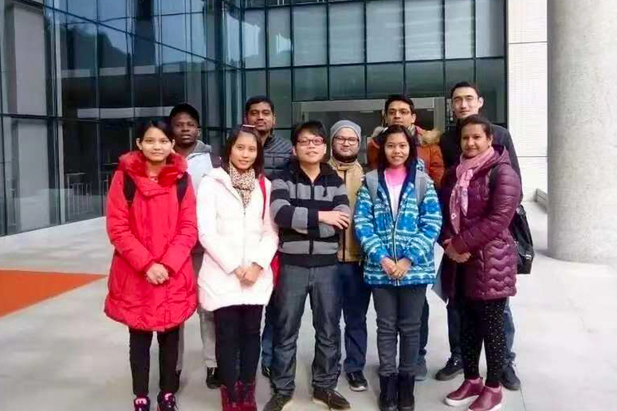 孟详喻与其教授的国际学生合影