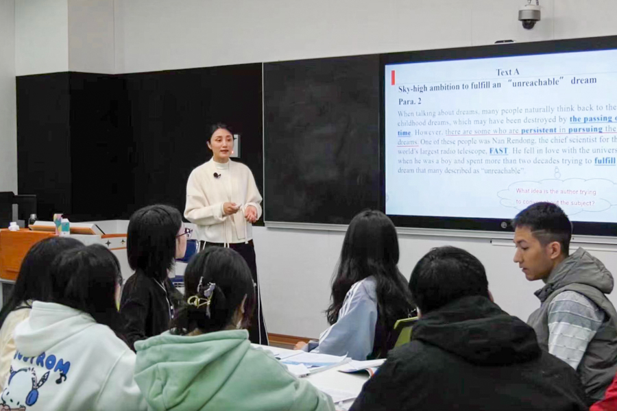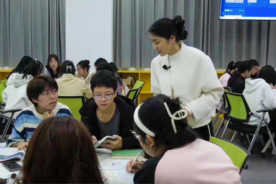 “对于理科生来讲,外语的学习对大部分同学来讲都是枯燥无味的,如果是还秉承着以前传统课堂的方式,每天老师站在上面讲语法,讲单词。那他们的到课率和抬头率就会更低,所以我的课堂还是以应用为主。”面对《大学英语读写》这类大班授课模式下的教学挑战,洪佳丽会根据学生的不同背景和学习能力,量身定制学习方案,实行差异化教学。“洪老师的课堂就像一段旅程,旅途中既有丰富的风景,也有深刻的知识收获。”智能与工程学院学生张伟俊深有感触地说。