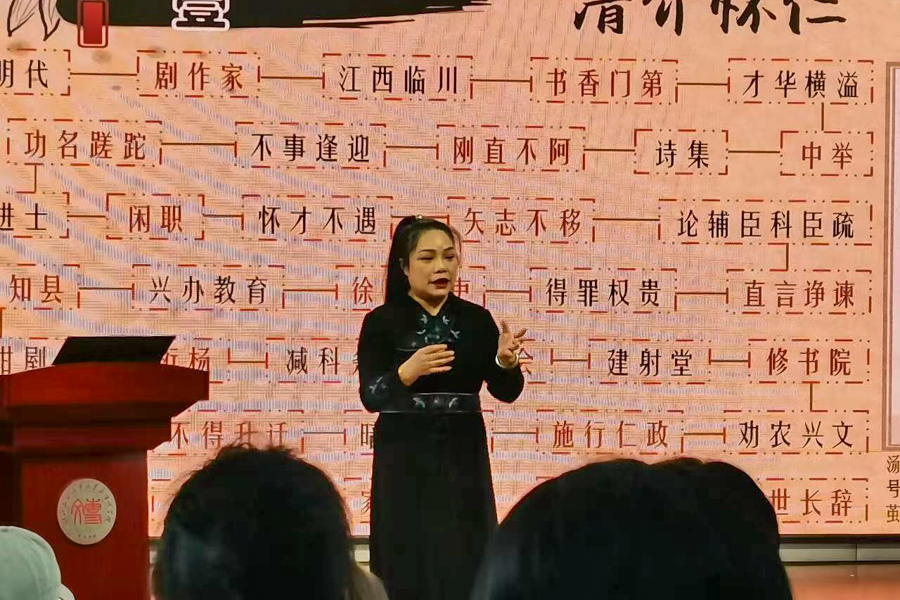 周韬为了让学生能学有所用、有效接收知识,在备课时首先制定了“知、行、能、德”的四维目标,主动与学生沟通交流,共同打造“专属化”课程。她以学生为中心,通过设计经典诗词、古典戏曲的观摩、实训、游戏以及知识图谱,结合艺术作品和历史背景,来增加学生记忆方式,让课堂“活”起来,以达到更好的学习效果,在教学创新中实现教学相长。有时候,学生的讨论和分析,也让周韬从中得到启发,这样的“双向奔赴”,让她和学生实现了共同成长。周韬经常这样说:“教学需要创新,创新的最终目标是为了让学生将生硬的背诵方式转变为主动式、体验式的理解。”