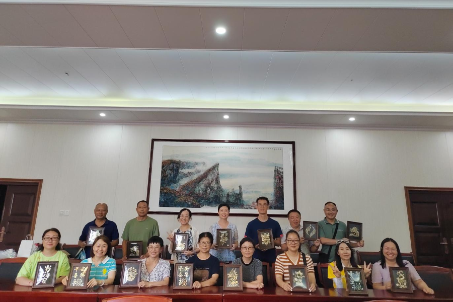 7月18日,疗休养团来到石马村远观蝴蝶岩,听取土家族白虎传说,探源清江源头,并前往周橝村参观千年紫薇。历史与人文交织,让教职工们惊叹于自然与生命的奇迹。当日下午,疗休养团参与非遗技艺——“烧金箔”手工活动,大家发挥创意,制作出一件件充满巧思的手工作品。