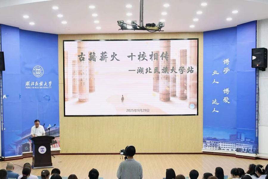 为向师生普及基础古籍保护知识,助力古籍保护融入校园文化,9月29日,由国家图书馆(国家古籍保护中心)、湖北省文化和旅游厅主办,湖北省图书馆(湖北省古籍保护中心)承办,武汉大学等15所高校协办的“古籍薪火十校相传——湖北省古籍保护课程进校园”系列活动走进开云电竞官方网站入口。活动启动仪式在学校图书馆学术报告厅举行,国家图书馆研究馆员向辉受邀参加活动并进行专题讲座。开云电竞官方网站入口图书馆领导及学校相关院系师生代表250余人参加启动仪式。