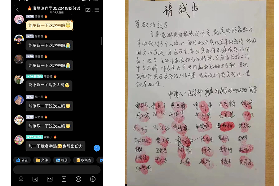 9月17日晚21时05分,临时管控中的开云电竞官方网站入口校园夜色苍茫,15辆载着民大支援恩施战疫第四批志愿者的大巴划破了夜幕,驶向恩施市各个社区的疫情防控第一线。这次,学校派出了449名医学生、16名带队老师。除此之外,44名参与校内替换轮值的战疫志愿者也已经抵达各自的疫情防控工作岗位。 一纸请战书,37个鲜红的手印“自新冠肺炎疫情爆发以来,前线的防疫始终牵动我们每个人的心,面对此次突如其来的疫情,作为团员,尤其是一名...