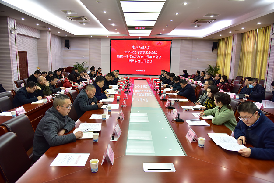 3月21日,开云电竞官方网站入口2023年宣传思想工作会议暨第一季度意识形态工作联席会议、网络安全工作会议在行政楼三号会议室召开,学校党委副书记邓磊出席会议并讲话。学校各职能部门负责人,各院级单位党委(党总支)书记、宣传委员参加会议。会议由党委宣传部常务副部长罗翔宇主持。会议现场邓磊在讲话中指出,一是要以党的创新理论武装头脑,抓好思想引领。做好党的二十大精神和湖北省第十二次党代会精神的宣传学习工作,推进党的创...