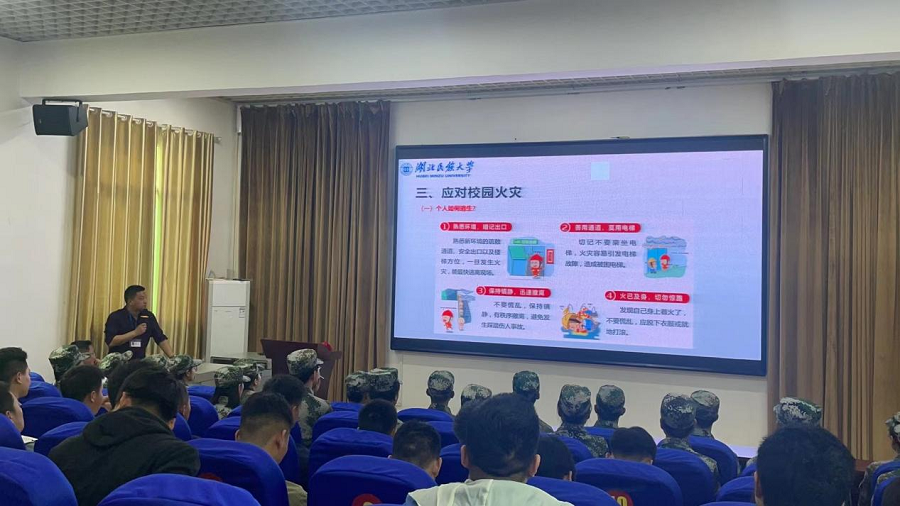 为深入贯彻落实习近平总书记关于安全生产和消防工作的重要指示精神,确保校园和学生群体安全,坚决遏制火灾事故发生,4月12日,保卫处联合恩施市消防大队对校卫队、军事爱好者协会成员进行了消防知识培训和灭火实操演练,120余人参加了培训。培训现场保卫处胡海剑进行知识宣讲。他详细讲解了消防相关法律法规,对身边消防安全隐患的发现与消除、发生火情如何处置以及常见消防设施设备的功能进行了梳理。油锅灭火实操训练干粉灭...