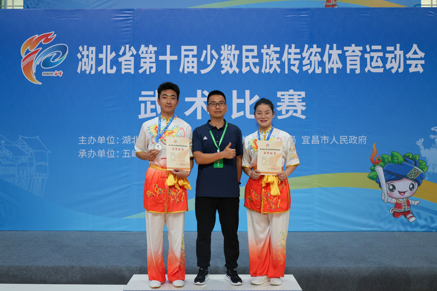 4月19日,湖北省第十届少数民族传统体育运动会第一阶段比赛拉开帷幕,蹴球、押加、武术、陀螺、民族式摔跤五大项目同时开赛。我校代表团派出武术、押加、陀螺、蹴球4支代表队共24人参赛。武术类项目,宋一波摘得男子传统一类拳银牌,李芳摘得女子传统一类拳铜牌;陀螺类项目,代表队摘得女子团体金牌,男子团体铜牌。截至4月19日18时,我校代表团取得一金一银二铜的优异成绩。武术类项目获奖者及教练合影宋一波进行八极拳项目比...