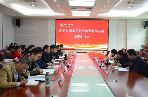 汇报会现场座谈会现场座谈会现场本网讯 10月23日-10月-24日,中共湖北省委宣传部、湖北省教育厅专家组来我校调研湖北省示范思想政治理论课教学基地建设情况。武汉理工大学马克思主义学院院长朱喆教授任组长,武汉科技大学刘勇教授、汉江师范学院任莹老师担任组员。调研组通过座谈会、听课、听报告和实地查看,全方位了解我校省示范思想政治理论课基地建设情况。23日下午,调研组分别同马克思主义学院领导班子、学校相关职能部门...