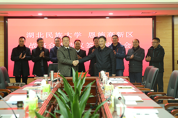 签约仪式现场本网讯(通讯员 yb)12月1日下午,我校与恩施高新区在高新区企业服务中心会议室举行战略合作框架协议签约仪式。校长顿祖义,校党委副书记、副校长汪兴平,高新区管委会主任黄敏,副主任田鸿、张伟等出席仪式。会上,恩施高新区管委会副主任张伟简要介绍了高新区的基本情况和校区产教融合情况,校长顿祖义与恩施高新区管委会主任黄敏共同签订了战略合作框架协议。根据协议,双方将在人才交流与培养、科技攻关和创新...