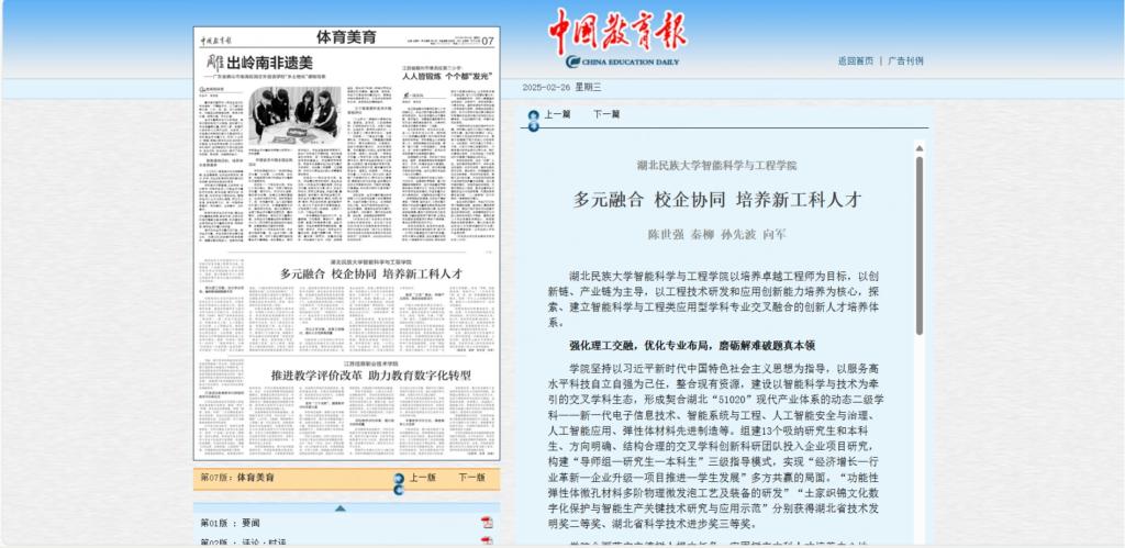 【中国教育报】开云电竞官方网站入口智能科学与工程学院多元融合 校企协同 培养新工科人才