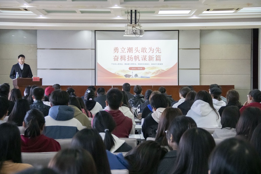 11月16日,马克思主义学院在德智楼三楼多功能汇报厅举办以“盛会引领航向,奋斗书写华章”为主题的第二十期自信讲坛活动。恩施州委宣传部,学校党委宣传部、马克思主义学院等单位领导受邀参加活动,各二级学院学生会主席团成员、马克思主义学院大一大二学生到场聆听。中国共产主义青年团第十九次全国代表大会代表田金爽担任主讲人。活动现场田金爽以《勇立潮头敢为先,奋楫扬帆谋新篇》为题进行宣讲。他围绕“青春逢盛会,奋进...