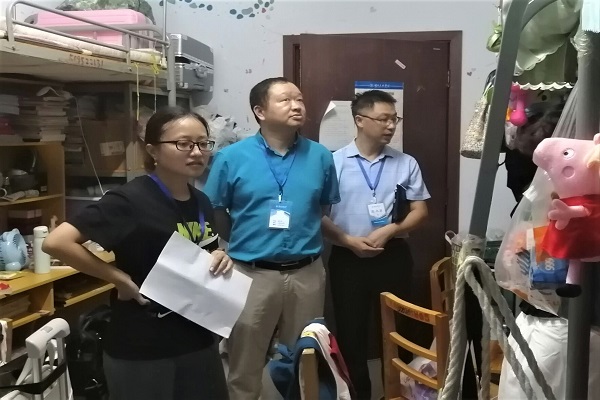 本网讯(通讯员 陈竞硕 万琪/文 钟美华/图)8月31日,我院学生在离校八个月后顺利返校,当晚,院党总支书记张刚,院长余爱农,副院长李国祥、刘应煊,学生科老师张艺馨、刘恒以及各班班主任前往达人六栋和立人四栋开展寝室走访活动。